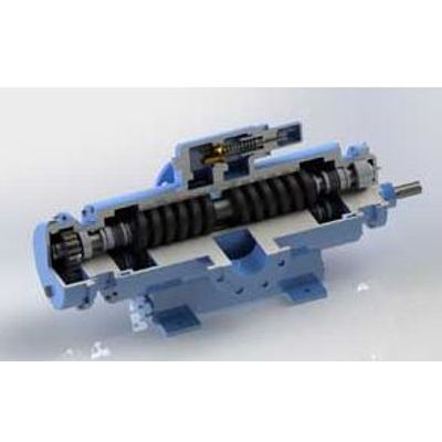 Self-priming rotary displacement pumps in a compact range with external bearings without touching medium. Due to external timing gears there is not metal –to-metal contact with the between screw . Regarding to our design, the pump makes suction from four points Liquid by screws carry towards the pressure side. Provides a pulsing flow of the pump is running. Hydraulic axial loads balanced to zero.