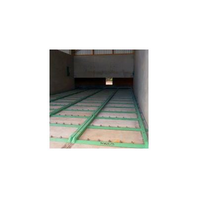 The biomass bulk material like wood chips, shavings, bark and green waste are stored in bunkers. The discharging material is transported through several push rods, which are driven hydraulically, to the bunker outlet opening and led to the conveying system.