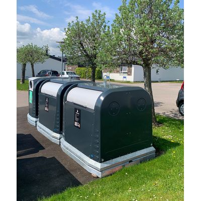 A container system that ideally combines the demands of residents and municipalities with the requirements of recycling companies. This robust above-ground container from Villiger is available in a modular system. There is a choice of volumes from 1.5 to 4.6 m3, inserts for all fractions (waste types) and the usual emptying systems. Made of galvanized, powder-coated sheet steel, it is suitable for any location. Options: Bondal sheet, sound insulation, can presses, throw-in sluice, and more.