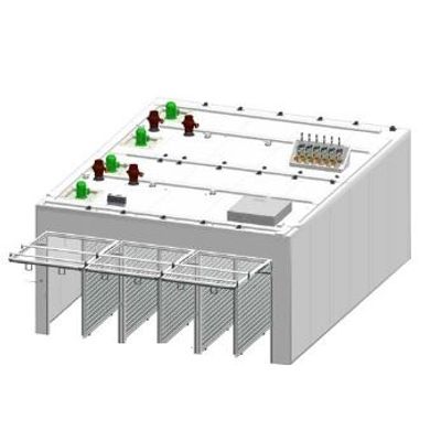 Power in 400V/3Phase/60Hz – 2,87kW. Power trolleys 90-305V/1phase +N/50/60Hz – 600W. Ø8mm push-in Humidification RO water – 7L/h @ 1,5 Bar. Ø22mm push-in Cooling water in/out – 4,5kW chilled water cooling. Ø160mm Inlet clean air – 600m3/h