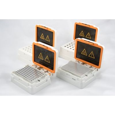 Optimise flexibility and performance with our range of interchangeable and intuitive heat blocks, designed for use with the Ther-mix thermal mixer or our Flexi-therm dry block heater. With excellent temperature control, all Heated Modules are pre-calibrated with a built-in heated lid to provide direct consumable contact, a more efficient way of heating than traditional incubation methods, such as hot blocks, water baths and heating air around samples.