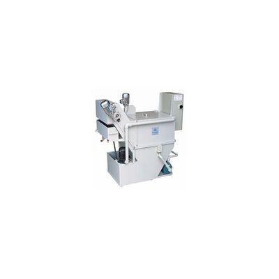 An automatically operated central unit for management of water based cutting coolants. This unit includes a 3-phase lamella separator in which solid particles and tramp oil are separated and a clean tank for the purified fluid. The unit is equipped with a supply pump delivering the purified fluid to the machine tools. An automatic coolant topping up system keeps the fluid system with constant volume and dilution rate. The feature of this system is the lean maintenance, provided by automatically operating system and the separation that does not require consumable materials. Automatically discharge of separated wastes; tramp oil and solid particles. Excellent performance in tramp oil separation.