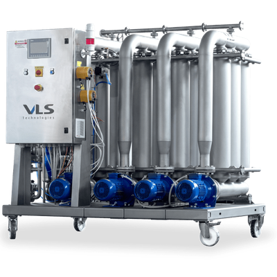 The standard version of our cross flow filter, to process filtration with an innovative method avoiding kieselguhr. Equipped with capillary polyethersulphone (PES) filter membranes. With the standard version of our cross flow filter it’s possible to use from 3 to 12 membranes, for a maximum filtering surface of 120 mq., avoiding the usage of kieselguhr and other filtration adjuvants. An innovative, ecological and smart process to filter food liquids.