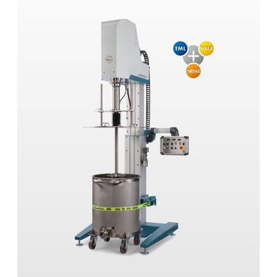 DISPERMAT® SC4: a high-performance production dissolver with a wide range of accessories. The DISPERMAT® SC4 disperser is a multipurpose production disperser for product quantities from 30 to 600 liters. The dissolver is available for container sizes of up to 750 liters. The dissolver can optionally be equipped with a wide range of exchangeable accessory systems. The innovative, modular dispersion machine supports various stirring, dispersing and grinding processes. The patented change system enables the use of a rotor-stator system, dissolver or basket mill.