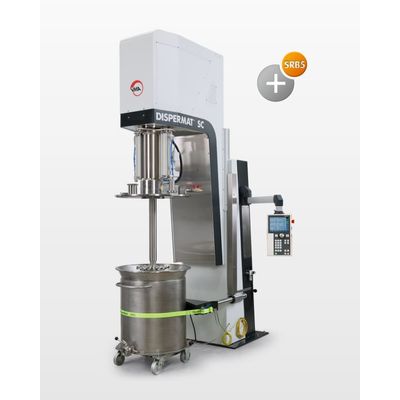 DISPERMAT® SC5: a high-performance production dissolver with a wide range of accessories. The DISPERMAT® SC5 dissolver is a multipurpose production disperser for product quantities from 80 to 1000 liters. The dissolver is available for container sizes of up to 1250 liters. The dissolver can optionally be equipped with a wide range of exchangeable accessory systems. The innovative, modular dispersion machine supports various stirring, dispersing and grinding processes. The patented change system enables the use of a rotor-stator system, dissolver or basket mill.