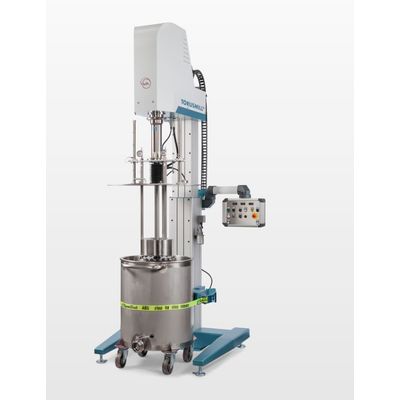 High-performance DISPERMAT® SCV4 vacuum dissolver for production. The DISPERMAT® SCV4 production vacuum dissolver is equipped with a powerful vacuum system. The vacuum system is suitable for dispersing high viscosity products under vacuum. This prevents air inclusions during production. The DISPERMAT® SCV4 disperser is a multipurpose production dissolver for product quantities from 30 to 600 liters. The dissolver is available for container sizes of up to 750 liters