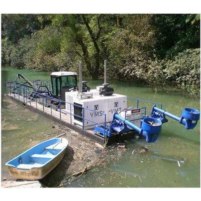 The VMI Gladiator 12 is equipped with a 14 inch (355mm) suction and 12 inch (300mm) discharge pump and maximum dredging depth of 30 feet (9.1m). This dredge features heavy duty construction for maximum durability and long life. A large operator cabin provides plenty of space for operator comfort, storage, and additional personnel. The dredge easily breaks down into sections for transportation.