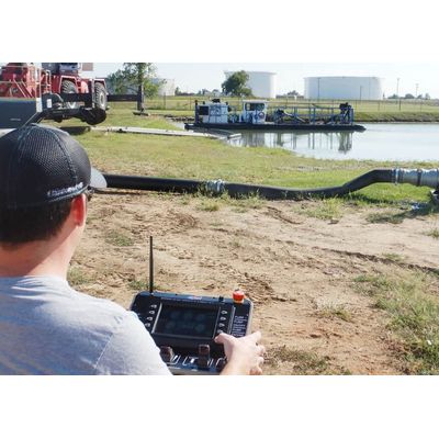 The remote dreding system offers vmi customers two modes of operation to provide the flexibility to confindently pursue any dredging job. The control console communicates with the dredge through a state of the art digital spread spectrum radio system that provides a reliable connection free of interference. The remote dredging system can operate for up to 12 hours on a single battery charge or connect to any 12 volt power source to operate indefinitely.