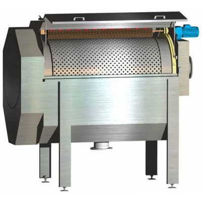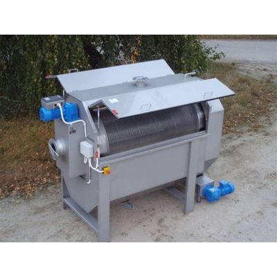 As the rotary screen is used for continuous separation of solid pollution in waste water but with reversed principle. Polluated water is transported by a pump or flows by its own gravitation into the rotatingdrum screen. The water flows through the slots of the screen and falls into the outlet tank, then through the pipe out of the drum screen (into the sump,sewerage). Impurities exceeding the opening size of the slot remain on the internal surface of the screen and by the rotation of the screen they are convoyed by the screw to the open side of the screen .The screenings slide down and fall into a container or onto a conveyor.