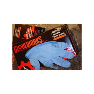 Large lightly powdered nitrile gloves box of 50 pairs.