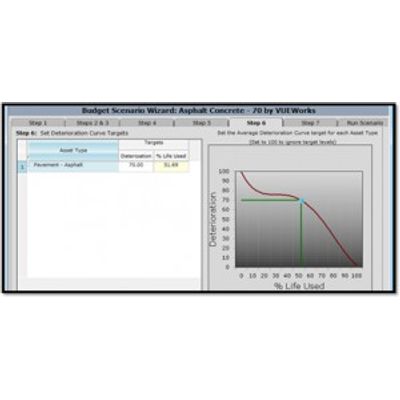 Budget Forecasting: The VUEWorks Budget Forecasting module delivers configurable, multi-year capital improvement planning capabilities to help determine long term budget needs based on deterioration curves. Use one of the supplied deterioration curves or one of your own as a basis for forecasting and then identify at what point on the deterioration curve an asset should be rehabilitated or replaced based on risk and condition.