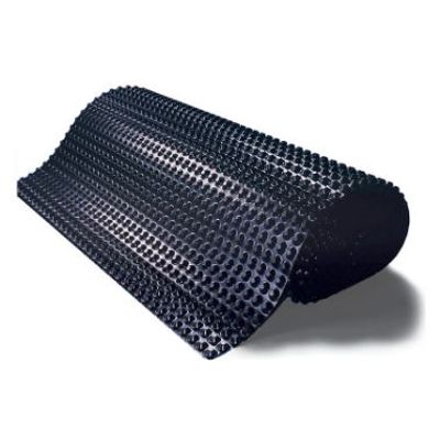 Suitable for subterranean foundation walls, tanking and basement construction. The 8mm deep cups provide an air gap between the concrete structure and the backfill. Water runs down the outer surface towards a drain at the bottom of the structure. Creates a permanent air gap when fixed to surface walls and floors, preventing hydrostatic pressure and helping to ventilate the structural wall.