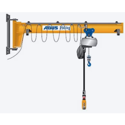 Smooth running jib for easy manual operation. Optimal highest hook position. Optimal electric trolly travel. Nominal slewing range up to 180 degrees.
