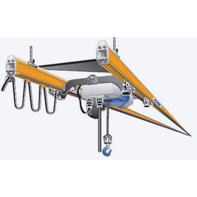 Load capacity up to 2t. Curves as possible on the track. Wide Suspension spacing. Optional electric hoist travel.