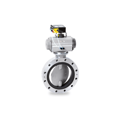 Butterfly Valve with Pneumatic Actuator and Positioner: Range of Nominal Widths: DN 50 – DN 1200. Operating Temperature: – 40°C to + 200°C*. Sleeve: replaceable or fix vulcanized.