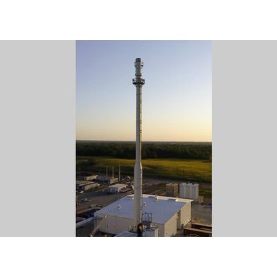 190’ Tall x 5.5’ Diameter Dual Wall Stack. One Of Two Units Installed To Replace Old Deteriorating Refractory Lined Stacks. The Flue Gas Contained High Concentrations Of Chlorides. The Inner Shell Is Constructed From Fiberglass Reinforced Plastic (FRP).