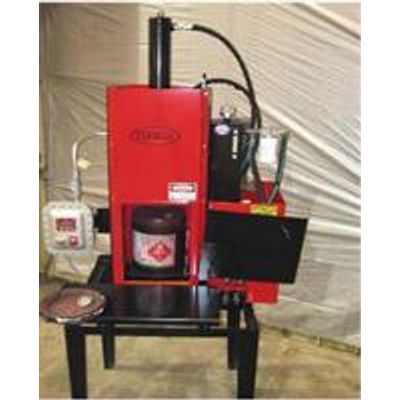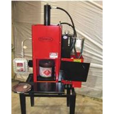 The Super 6PM is designed for the smaller generator who would like to crush the container without having to remove the lids. The piercer penetrates the bottom of the can as the crushing platen is indexing down and the liquids are ejected into a drum under the unit. Both M series crushers require only electrical power.