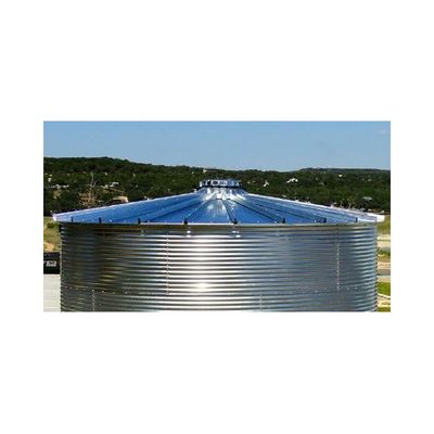 The most common CorGal tanks are available with inverted or funnel type roof systems. These tanks are often used to capture rain that falls directly onto the tank roof or to contain water that may be directed to the tank from a gutter, downspout or other water conductor pipe. A safety structure and debris filter is installed at the low point of the inverted roof CorGal tank. The safety structure will prevent a small child from falling into the tank. The debris filter will keep leaves, trash and animals from entering the water storage area of the tank. The inverted roof consists of multiple galvanized steel roof panels that are bolted together with a flat seam.