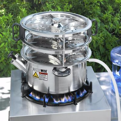 Everyday preparedness brings peace of mind in the face of unforeseen emergencies. In these situations, you simply can’t beat the Waterwise 1600. This all-stainless-steel distiller has no moving parts and delivers up to 16 gallons a day of pure, safe water—almost silently—with or without electricity. Its two modular parts are pre-assembled, so set-up is a breeze—place the 3-tray cooling assembly on top of the boiler, fill both with water, position on your heat source, attach the hi-temp tubing to the distiller, and insert the other end into a suitable collection/storage container, then activate the heat source. Digital timer included.