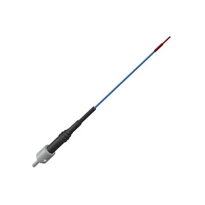 The fiber optic temperature probe TS2P is designed for fast measurements with direct contact to the heated element and offers immunity to RFI, EMI, NMR and microwave radiation. The standard temperature sensor TS2P has a measurement speed of up to 20 K/s. With an accuracy*2 of +/- 0.2 K it allows precise and repeatable measurements. The coating of TS2P temperature sensor is made of PTFE, the fiber tip has a quadratic edge length of 0.3 mm and has a ST-connector. For mechanical stability and applications e.g. in oil special protective coatings and hoses are available. The fiber optic probe TS2P consists of a PTFE protected glass fiber and a plain GaAs-crystal (gallium arsenide) at the sensor tip. It is totally free of metal and immune to RFI, EMI, NMR and microwave radiation – therefore TS2P probes are explicit suitable for the use in high temperature ranges (-200 °C to +300 °C) as well as in aggressive and rough test Environments.
