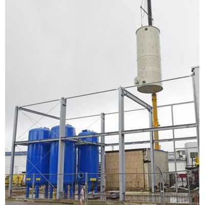 For larger systems for removing iron and demanganing, the filters are individually planned and optimally adapted to the water quality and requirements of the customers. Here, filter containers made of steel or GRP with a nozzle bottom are often used, which are equipped with front piping and electric or pneumatic flaps.