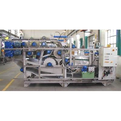 100% automatic filtration with high efficiency. Sieve belt presses or belt filters are used to purify both municipal and industrial sludge. They have a useful dewatering width of 500 to 3,000 mm, with 5 to 15 dewatering rolls. The dry-matter content in the cake can go in organic waste water sludge up to 25 percent, while for some types of inorganic sludges more than 60 percent is achievable. Popular applications are in wastewater treatment, soil purification and fruit juice processing.