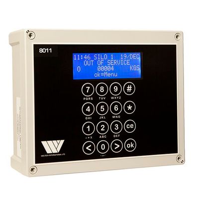 The 8011 controller can monitor up to 10 separate silos. It displays the weight of feed in each silo and monitors the last delivery, total deliveries, last 24 hours feed usage, and total feed usage for each silo. Data can be printed, sent to a PC where the data can be stored, sorted, analysed or emailed.