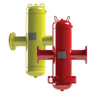 Air & dirt separators are designed to eliminate entrained air and separate debris associated with start-up and maintenance of any hydronic system. The design incorporates a skim valve, used to eliminate floating debris, a removable end cover for coalescing medium access, and an air vent to automatically release air from the separator. U.S. Patent No. 10,708,538. Wessels manufactures air and dirt products built in accordance with the ASME code.
