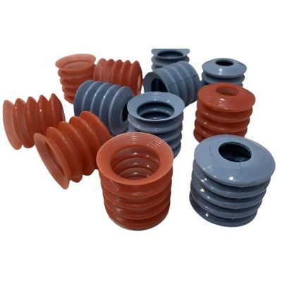 Western depanner bellow made from transparent or color food grade high strength silicone rubber. Western silicone suction cups (bellow)are widely used throughout the baking industry as a fast and effective method of extracting bakery products from oven pans on a moving conveyor belt. The heat and speed of this process results in inevitable wear on silicone based suction cups. Western metal detectable silicone suction cups are specifically designed to reduce the risk of silicone fragments contaminating food products during the depanning process.