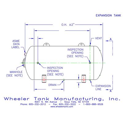 We build expansion tanks for commercial and industrial applications. We offer all our standard sizes in both a vertical and horizontal tank, and all sizes are also available with protective jacketing or UV protectant coating and insulation options: spray foam, foil back fiberglass, or armaflex. ASME stamped vessels 36″ diameter and smaller require 2-inspection openings. 42″ diameter and larger require a 12″ x 16″ manhole. Vessels with protective lining require manhole for access. O.A.L. dimensions are nominal +/- 2% shall be allowed (2″ minimum). Capacity is nominal +/- 2% shall be allowed. Tank dimensions are approximate and subject to change. Tank dimensions should not be used for pre-piping.