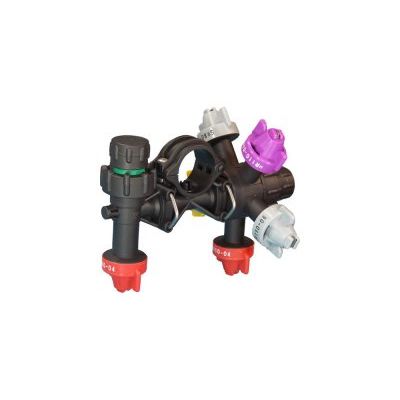 Combo-rate ii stacking nozzle are a new design, which include having the nozzle bodies attach to the boom with a bottom (or top*) fed inlet. Notably, this allows for nozzle bodies to be stackable both forward and backward off of a boom. (as well as having an outlet directly under the boom)