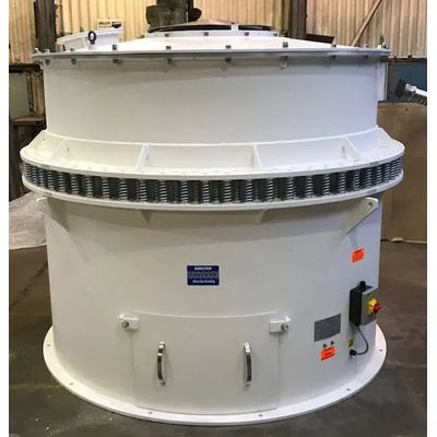 Only the Boulton design of Vibro-Energy Mill has the vibratory generator mounted at the centre of gravity of the mill chamber with the coil springs mounted around the periphery of the chamber.