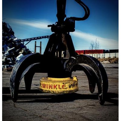 Winkle’s DSG Series magnet grapple allows the operator to combine the tines of a standard orange peel grapple with the capacity of a round lifting magnet.