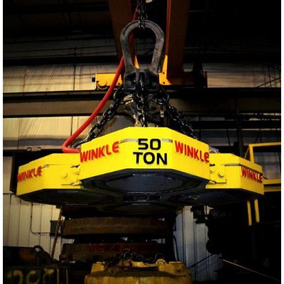 Winkle’s CM Series magnetic lifting device is designed to withstand harsh environments and is available in sizes ranging from 25” to 85” in diameter. These steel plate lifting magnets can also be offered in custom sizes upon request.