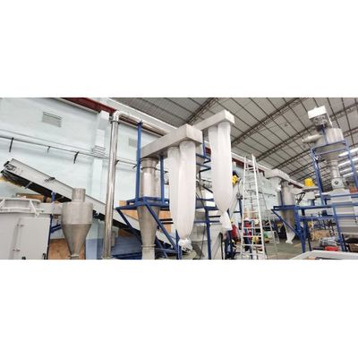 Air classifier pneumatically removes light impurities like paper and plastic labels from rigid plastics and plastic films. Typically used for eliminating PP/PE labels from PET bottles and labels from blue drums and plastic films.