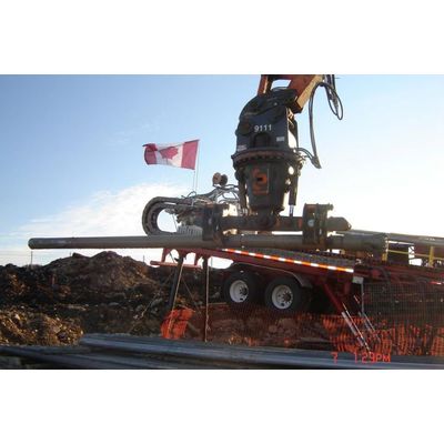 Gilbert offers Worlds biggest and strongest Excavator mounted Side Grip Sheetpiler in the world. Machine can lift a pile drive , drive a pile and even extract a pile. It can handle different sizes of sheet piles, H-beam, I-Beams , round tubes and timber piles. The Gilbert Grizzly MultiGrip can easily be installed on any excavator, allowing you to work in confined spaces where the use of conventional piling equipment is difficult. An intuitive control and assistance system allows the operator to achieve maximum potential productivity with a high-level of precision during the entire pile driving process.
