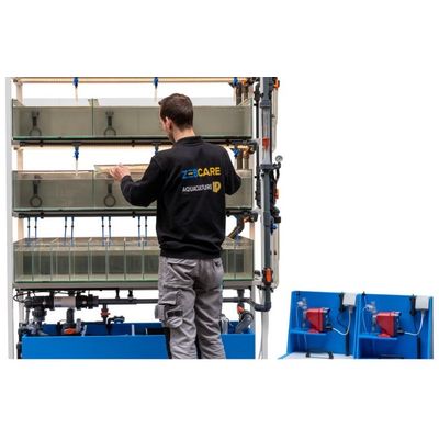 Zebcare has developed a specialized standalone zebrafish husbandry system designed to cater to the housing needs of zebrafish research lines. Based on over three decades of experience, this system provides optimal conditions for maintaining zebrafish genetic lines with stable water quality and ensures high animal welfare standards. The system incorporates a coated stainless steel rack with optional glass aquaria or polycarbonate fish tanks. A sophisticated filtration unit beneath the tanks includes biological and mechanical compartments, alongside UV disinfection, to maintain high water clarity and health standards. It has a compact footprint of 1.5 x 0.7 meters and stands 2.5 meters tall. Optional features can include a controllable LED lighting system, tap water filtration, or a salt- and acid dosing setup. For larger facilities, multiple racks can be connected to a centralized filtration and monitoring system. This makes it a suitable choice for many European zebrafish facilities.