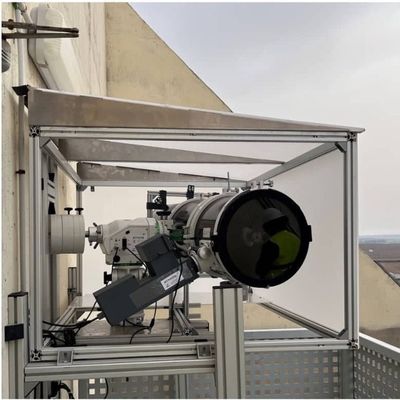 The ATMOS Atmospheric Attenuation Monitoring System, developed by Aragon Photonics and exclusively licensed to ZEPREN Solutions, is specifically designed for Concentrated Solar Power (CSP) tower plants. It autonomously measures atmospheric transmittance in real time, utilizing optical spectrum analysis. This technique helps distinguish the origin of attenuation by analyzing the spectrum of sunlight reflected by a target screen, which is further assessed by two telescopic optical devices. These devices measure the spectrum and compute the differential path attenuation across a wavelength range of 400-1630 nm. A key application of ATMOS is to monitor efficiency losses linked to atmospheric attenuation, facilitating site assessment for CSP plants. The system adheres to the ISO 9050 standard, ensures self-calibration, and includes a unique algorithm for classifying invalid measurements during abrupt atmospheric changes. Its hardware features automatic alignment to maintain consistency in measurements without external calibration.