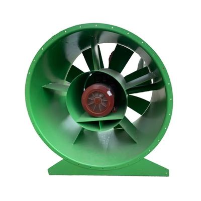 The ASF series axial flow fans are designed for high efficiency, low noise, and reliable operation. With an electrostatically sprayed epoxy resin housing, these fans resist corrosion for up to ten years. They are primarily used for ventilation and fire-fighting smoke evacuation in engineering constructions and environments requiring explosion-proof or anti-corrosion features. The fans are suitable for high-temperature applications such as ovens, furnaces, and kilns, where they circulate or cool air around the material being processed as part of hardening or tempering processes. The axial flow fan features an optimized aerodynamic design and advanced manufacturing technology, including an adjustable aluminum alloy impeller. This allows for increased air volume and wind pressure, along with a significant noise reduction, delivering pressure efficiency up to 82.3% and air volumes of up to 140,000 m^3/h. The fan casing is made from Q235 steel or stainless steel with various coating options, including hot-dip galvanization and furnace paint. The company caters to custom requirements, offering three packaging methods that meet international export standards, and it has implemented high-tech machinery in its manufacturing processes to support high-quality production.
