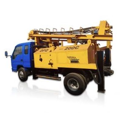 Application: hard rock, water well drilling rig, Control system: Hydraulic control system, Drilling Diameter: 4in to 12in, Max. 200m depth, Truck mounted.