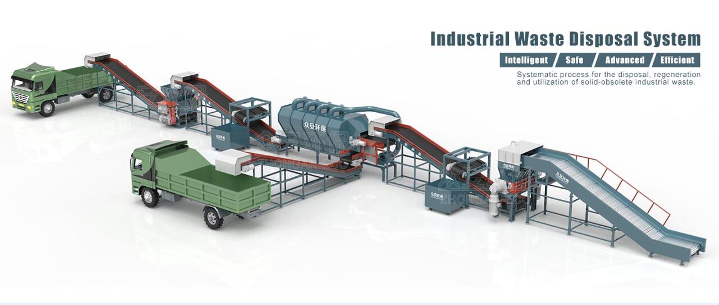 ZHONGAN focusing on solid waste reduction, harmlessness, resource utilization technology and disposal equipment research, development, manufacturing, sales and service, provides customers with one-stop solid waste recycling machine and turnkey technical solutions. ZHONGAN`s main business area covers overwhelming majority of waste disposal equipment& technical solutions which includes: comprehensive industrial waste disposal, bulky waste disposal, biomass agricultural and forestry waste disposal, organic waste disposal, medical waste disposal, hazardous waste pretreatment, waste tire regeneration disposal, municipal waste crushing& sorting, and other solid waste disposal . Combined with our visual monitoring and intelligent operation& maintenance system enable us provide long-term customer satisfaction and to deliver long-term practical solutions that guarantee the lowest downtime and the longest durability.