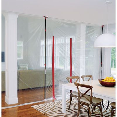 Two spring-loaded poles secure a dust barrier up to 10 feet high and 10 feet wide. Strong and lightweight stainless steel construction. Innovative non-skid, non-marking head and plate. Package contains two poles with parts (heads, plates, and GripDisk non-slip pads). Quick & easy to set up — no ladders, no tape, no damage.