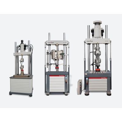 The load frames of ZwickRoell’s servohydraulic testing machines have been specially designed for specific fatigue testing requirements, which is reflected in their high frame stiffness, among other things. They are used to determine material characteristic values under vibrating loads, including S-N tests (high cycle fatigue tests), LCF tests (low cycle fatigue) or fracture mechanics tests. Depending on testing requirements and the need for ergonomic working conditions in everyday tests, the testing actuator is mounted either above or below the test area. A separate hydraulic power pack is required for the servohydraulic load frames. ZwickRoell offers hydraulic power packs with different power levels, allowing the servohydraulic load frames to be adapted to specific customer requirements.
