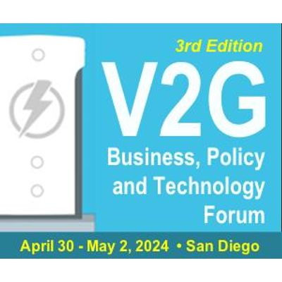 The 3rd edition of the V2G Business, Policy & Technology Forum, April 30 - May 2, 2024 in San Diego brings together top industry players, working groups, utility professionals and others who are focused on the successful development and implementation of vehicle-to-grid in the United States.