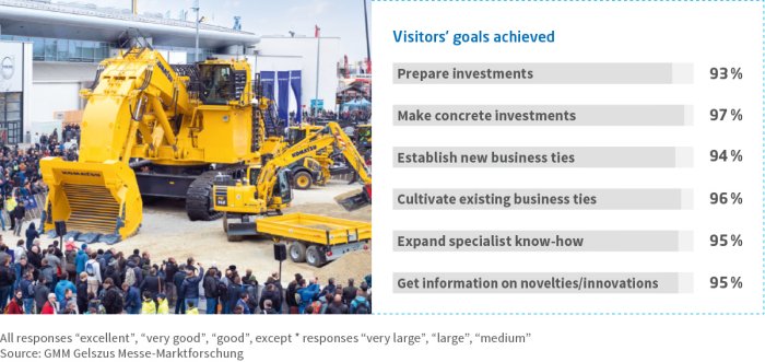 It brings together the key players from the mining and construction industries and presents all relevant technologies and trends of the steel and coal industry. This makes bauma the ideal setting for successful business in mining.