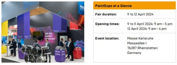 PaintExpo takes place every other year in Karlsruhe as a showcase for innovations, applications, future technologies and trends covering all aspects of industrial coating. The trade fair spans the entire range of international products and services in the supply chain for industrial coating technology. The wide spectrum of products extends from spray guns, equipment and materials to automation technology. This globally unique get-together of companies from the industry is unparalleled worldwide, making it highly attractive for coating service providers and in-house coating companies from around the world.