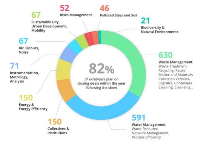 Gathered by sector of activity inside 6 exhibition halls, they make up acomprehensive representation of the environment market.