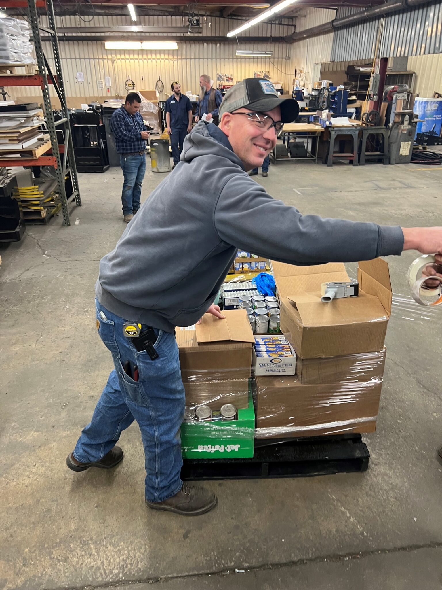 On build day, teams gather, construct, and present their creations. Then, once our builds are complete, everything is loaded for delivery to our local food shelf. It’s a visual show of generosity: pallets of canned goods, stacked high, ready to serve the community.