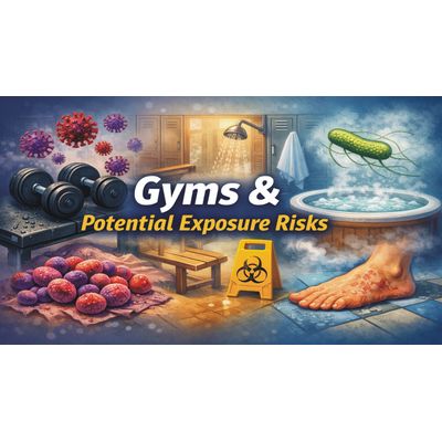The video highlights risks in locker rooms, showers, hot tubs, and other damp areas, while emphasizing that simple precautions, like wiping equipment, washing hands, covering cuts, and maintaining good ventilation and cleaning, can significantly reduce exposure concerns.
