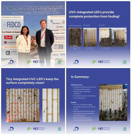 Patricia G. is at European Desalination Society (EDS) in Porto this week, listening to some great presentations from other companies. She was joined by Menko Remmelts from Galuxea, who shared the results of our R&D project on UV-C LED panel technology for biofouling control. The early results are promising, and we’re excited about the potential of this technology to help prevent marine biofouling on surfaces. If you`re at the event, feel free to stop by and chat with us. Or if you`re not, leave a comment here, and we’d be happy to share more.
